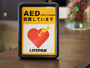 | AEDを設置しております。 もしもの時も安心です。 |